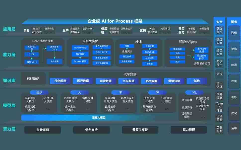 端到端的一站式AI工作空间深度融合了从企业战略规划到日常经营的全流程业务板块,,,定向解决车企内部领域多、、、、部门多、、、链条长、、、场景碎片化等难题,,支持车企快速构建以AI为核心的生产力写作体系,,,,实现任务执行与AI能力的无缝集成与交互